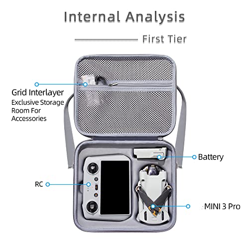 ✅【Design speciale】 La custodia per il trasporto del drone è compatibile con DJI Mini 3 Pro - Con la versione dello schermo s. Stampaggio di precisione e protezione completa.