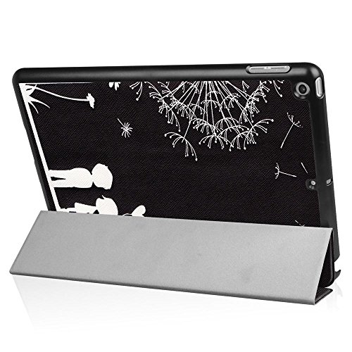 IPad 9.7 Inch 2017 Custodia, Tri-fold Smart Shell Custodia PU in Pelle per Apple Nuovo iPad 9.7 Pollici 2017 Flip Cover con Funzione Stand (Denti di leone nero amanti)