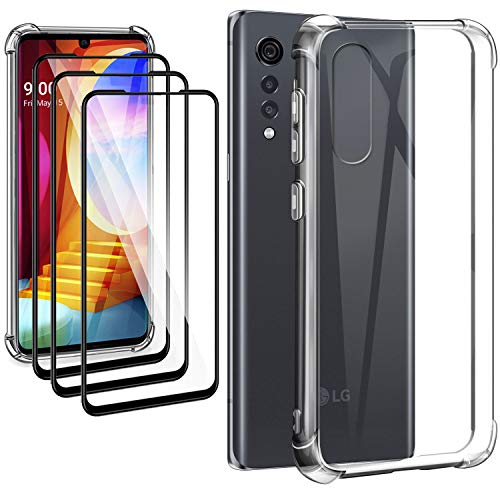 HYMY Custodia per LG Velvet 5G + 3 x Pellicola Protettiva - Trasparente Silicone Case TPU Protettivo Rinforzo a Quattro Angoli Resistenza sismica Cover per LG Velvet 5G