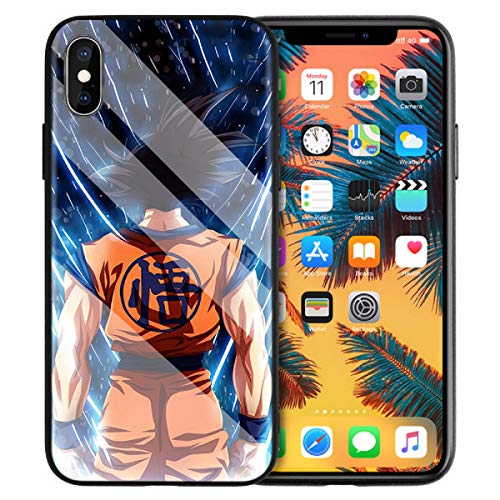 Custodia in vetro temperato per iPhone 6 6S 7 8 Plus 10 X 11 Pro 11 Pro Max XR XS Max Dragon Ball Super Saiyajin Blu Ultra Instinct Cover posteriore (5, iPhone 11)