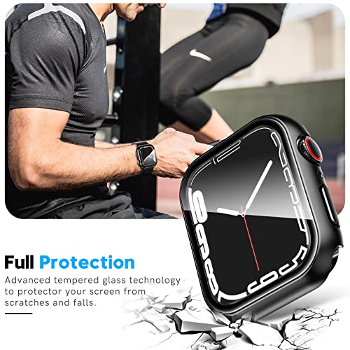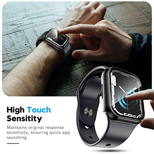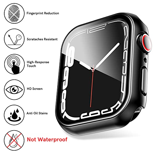 EGV Custodia in vetro temperato da 2 pezzi compatibile con Apple Watch Series e Apple Watch SE Pellicola schermo, Cover protettiva rigida per (Apple Watch Series 8/7 45MM, Nero)