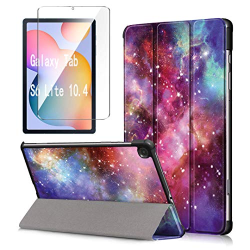 LJSM Custodia + Vetro Temperato per Samsung Galaxy Tab S6 Lite 10.4" P610 / P615 - Pellicola Protettiva, Guscio Supporto Protettiva Tablet Cover in Pelle Flip PU Case - Milky Way