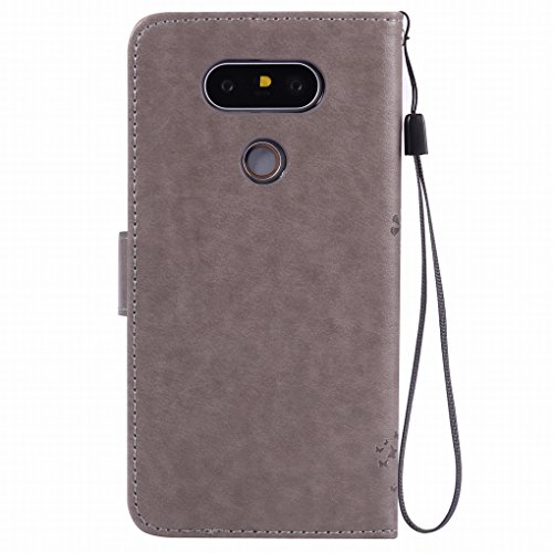 Custodia LG G5 (H850, H858, VS987, H820, LS992, H830, US992) Cover Case, Ougger Alberi Gatto Printing Portafoglio PU Pelle Magnetico Stand Morbido Silicone Flip Bumper Protettivo Gomma Shell Borsa Custodie con Slot per Schede (Grigio)