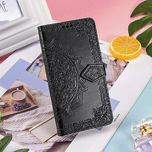 Custodia per TCL 40 SE Wallet Cover, Retro Flowers Design Pattern Custodia, PU+TPU Pelle Cover, [Carta Fessura] Flip Wallet Case Cover Adatto per TCL 40 SE, Nero