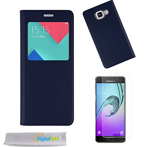 Custodia Window Case Dark Blue per Samsung Galaxy A3 2016 + 2 pellicole protettive + pannetto pulisci Schermo Firmato ®DigitalBay