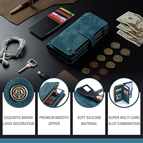 Custodia per Xiaomi Redmi Note 10ProMax/Note10Pro Portafoglio Stand Caso, PU Pelle Flip Cover con Magnetica Pulsanti, Slot per Schede, Slot per Contanti, Tasca con Cerniera e Cornice per Foto (Blu)