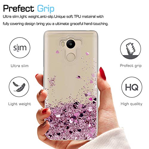 LeYi Custodia Xiaomi Redmi 4 / Redmi 4 Prime/Redmi 4 PRO Glitter Cover con HD Pellicola,Brillantini Silicone Liquido Sabbie Mobili Bumper TPU Case per Custodie Xiaomi Redmi 4 Donna ZX Rosa Rose Gold
