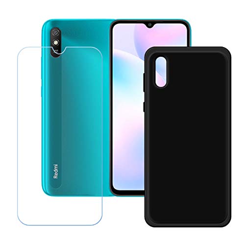 Qualità Custodia Morbido TPU Nero Silicone Case Custodie Cover + Transparente Pellicola Protettive in Vetro temperato progettato per Xiaomi Redmi 9AT (6,53 pollici)