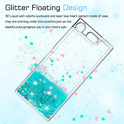 LeYi Custodia Sony Xperia XZ1 Compact Glitter Cover con HD Pellicola,Brillantini Trasparente Silicone Liquido Sabbie Mobili Bumper TPU Case per Custodie Sony Xperia XZ1 Compact Donna ZX Turquoise