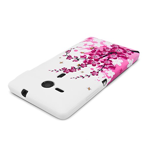 Custodia Sony Xperia SP Cover Silicone Gel Floreale Ape Rosa E Bianco
