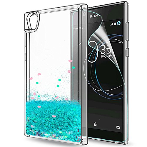 LeYi Custodia Sony Xperia L1 Glitter Cover con HD Pellicola,Brillantini Trasparente Silicone Liquido Sabbie Mobili Bumper TPU Case per Custodie Sony Xperia L1 Donna ZX Turquoise