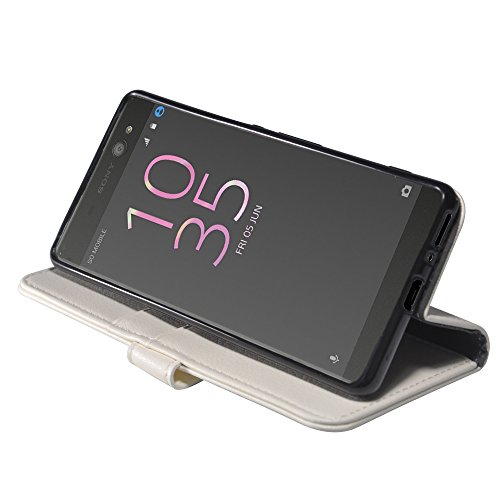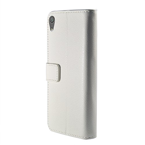 Custodia Sony Xperia XA, Aomo Sony Xperia XA Custodia Portafoglio in pelle Case Cover [stile del libro] [Card Slot] [Flip Cover] [caso del basamento] cassa del telefono di protezione di cuoio per Sony Xperia XA (5 pollici)-Bianco