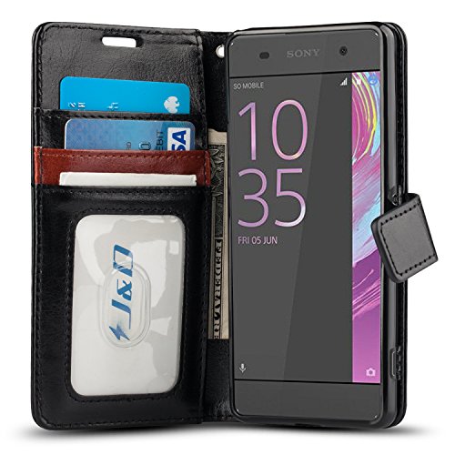 J&D Custodia Xperia XA, [Portafoglio Stand] [Sottile Adatta] Protettiva Robusta Antiurta Flip Custodia per Sony Xperia XA - Nero