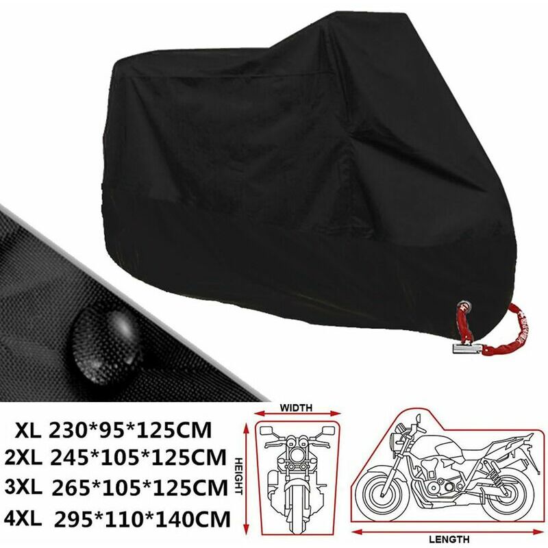 Colore: nero Materiale: trama morbida, tessuto in poliestere 190T con rivestimento in PU, adatto a tutti i tipi di veicoli elettrici per moto. br/> Fori di blocco diametro 3,8 cm: è possibile aggiungere tutti i blocchi di diametro inferiore a 3,8 cm Dimensioni opzionali: XL (230*95*125 cm) 2XL (245 cm). *105*125cm) 3XL(265*105*125cm) 4XL(295*110*140cm) La confezione include: 1 * Telo coprimoto nero 1* Custodia Nota: il lucchetto nella foto non è incluso.