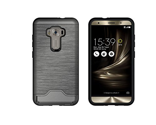 Custodia Zenfone 3,Cavalletto Cover [Anti-Shock] [Dual Layer Protector] [Slot per Schede] [Hard PC] [Trama Spazzolata] [Custodia Antigraffio] per Asus ZE552KL (Zenfone3, Grigio)
