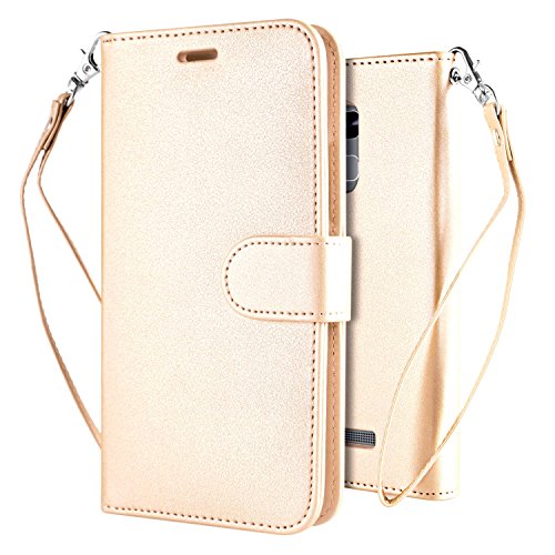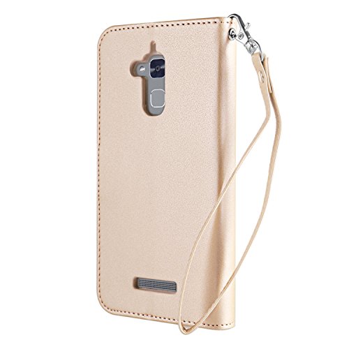 Custodia Zenfone 3 Max Cover Oro, Leathlux Puro Colore Modello Design Con Cinturino da Polso Magnetico Snap-on Book style Internamente Silicone TPU Custodie Case in pelle Protettiva Flip Case Cover per Asus Zenfone 3 Max ZC520TL 5.2"