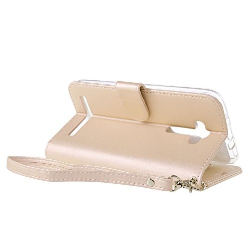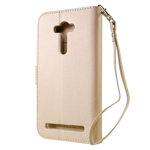 Custodia Zenfone 2 Laser ZE550KL Cover Oro, Leathlux Puro Colore Modello Design Con Cinturino da Polso Magnetico Snap-on Book style Internamente Silicone TPU Custodie Case in pelle Protettiva Flip Case per Asus Zenfone 2 Laser ZE550KL 5.5"