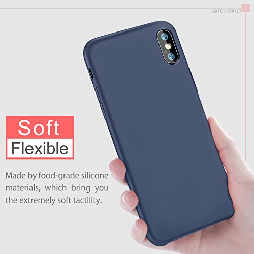 Custodie per iPhone X, BKSTONE Custodie antiurto in gel di silicone liquido con morbido cuscino in microfibra di stoffa per iPhone X (Blu Scuro)