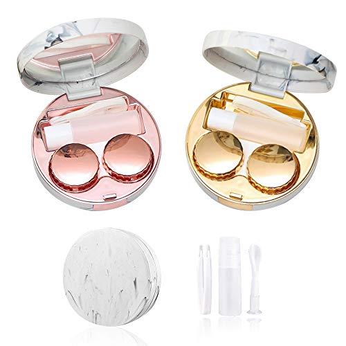 2 custodie rotonde in marmo per lenti a contatto, kit portatile per lenti a contatto con specchio, mini contenitore per lenti a contatto (oro rosa, oro) (oro, oro rosa)