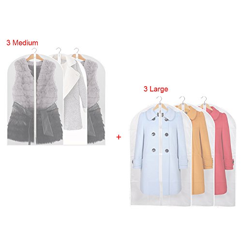 Set di 6 custodie per vestiti, borse protettive, impermeabili, antipolvere, per completi, camicie, abiti e vestiti, confezione da 3 da 120 x 60 cm, e 3 da 100 x 60 cm 6 Pack(3M+3L)