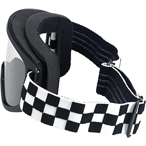 Custom Chrome Occhiali Goggle Biltwell Moto 2.0 Checkers Black/White Nero/Bianco Lente Trasparente Fascia Elastica Stile Cafè Racer Biker