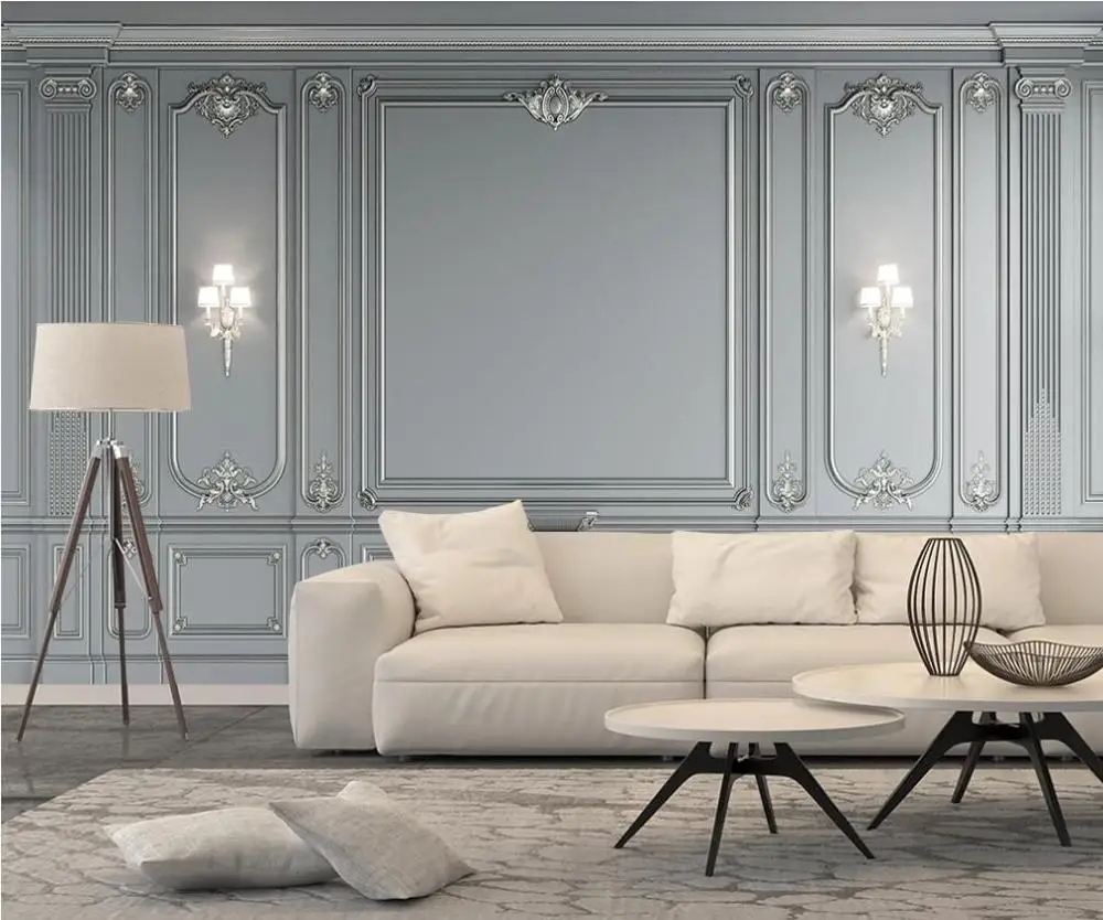 Custom 3D mural wallpaper European elegant decorative background wall gray imitation furniture mural decorative painting