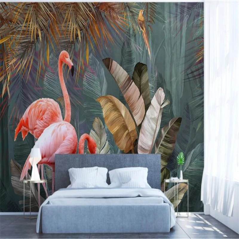 Custom Mural Wallpaper Modern Minimalist Tropical Plant Forest Flamingo Background Wall Painting