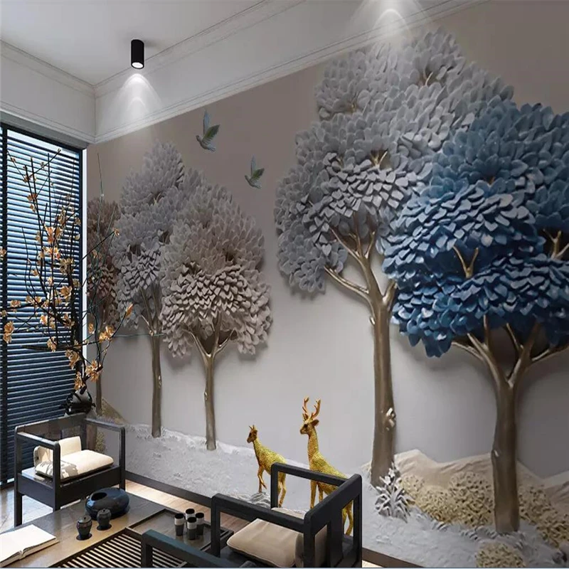 Custom Mural Wallpaper 3D Relief Elk Living Room TV Background Wall Painting