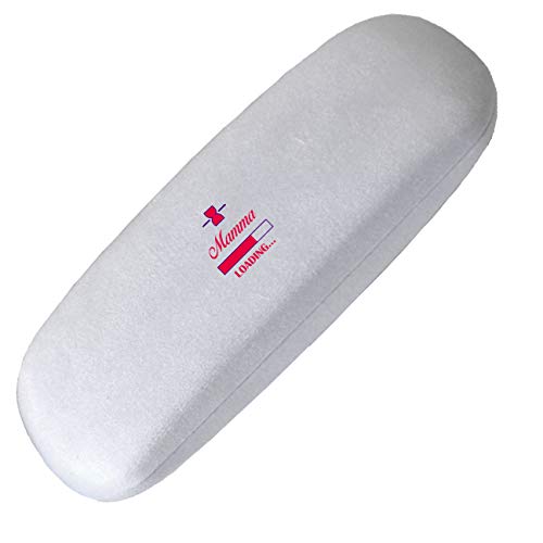 Cover rigida astuccio porta occhiali,modello #Festa della Mamma - Mamma Loading#, dal fondo bianco, in metallo ricoperta da pregiata microfibra vellutata. Utilizzabile anche come astuccio o confezione regalo per altri prodotti. Dimensione cm 16x6x3. Scatola da regalo a cuscino, INCLUSA NEL PREZZO. Originale idea regalo o per rendere unico un articolo di uso comune.