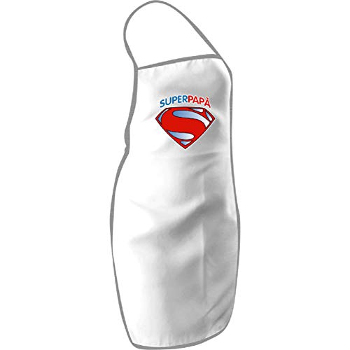Grembiule bianco 60x72cm, da cucina o barbecue, in poliestere, dimensioni 60 x 72 cm. Modello # Festa del Papà - Super Papà 1 #. Simpatica idea regalo, o per un look originale in cucina. Stampato con tecnica sublimatica per un risultato nitido, ad alta definizione, ed indelebile. La stampa non si rovina anche lavandolo piu' volte ad acqua calda in lavatrice. Eventuale fattura va richiesta contestualmente all'ordine.
