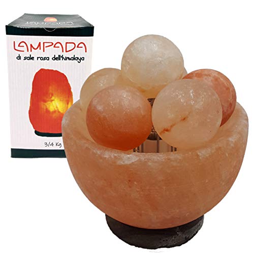 Lampada di sale rosa dell'Himalaya proveniente dalle miniere dell'area di Punjab in Pakistan. 3-4 kg. Diametro 17cm, a forma di Braciere con sfere. Composta da cristalli di sale antichi di milioni di anni, e lavorati a mano per creare un prodotto unico ed esclusivo. Il sale rosa dell'Himalaya è noto per le sue proprietà terapeutiche e depurative dell'aria, è un ottimo anti stress e favorisce il sonno. Attacco elettrico made in italy a norma CE.
