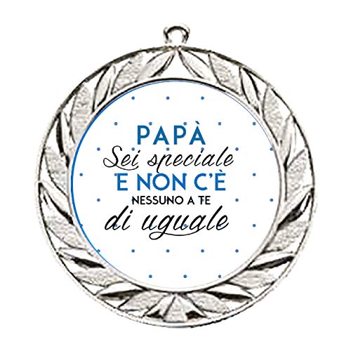 Medaglia sportiva #Festa del Papà - Sei Speciale Papà 1# in versione gold da 35mm. Fronte stampato su PVC adesivo e resinato nell'apposito incavo della medaglia. Il retro, per chi lo desidera, è personalizzabile con una dedica, un testo o un'immagine realizzato con stampa digitale UV, con un supplemento di euro 5, da richiedere CONTESTUALMENTE ALL'ORDINE. Scatola da regalo a cuscino, inclusa nel prezzo.