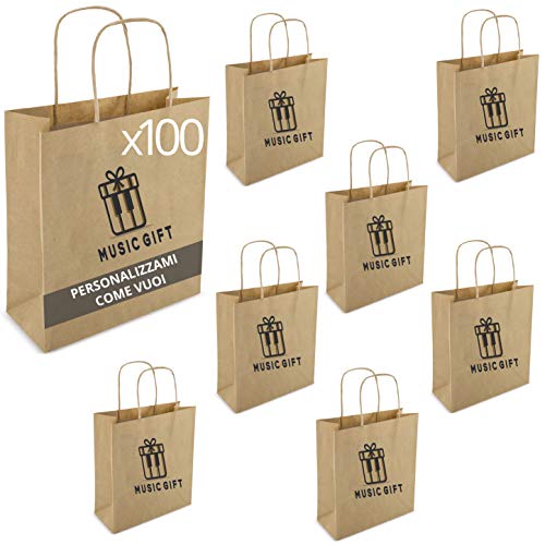 My Custom Style 10 Sacchetti Carta Kraft Riciclata, 22x23x10, Manici Cordino