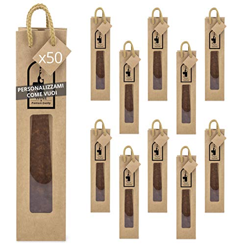 My Custom Style 100 Sacchetti Carta Kraft Riciclata, 9X9X38, Manici Cordino