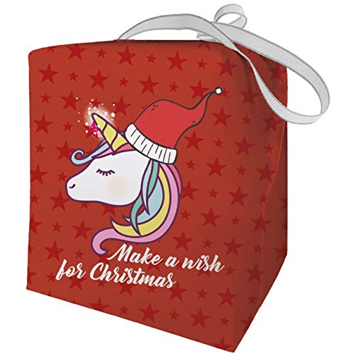 Scatola formato panettone con manico in nastro #Natale - Unicorno Natalizio 1# full print. Dimensioni 135x145x155mm. Realizzata con cartoncino da 300g. Aggiungi una scatola speciale, o a tema con l'evento a cui si riferisce, per rendere unico ed indimenticabile il Tuo regalo.