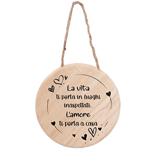 Targa targhetta tavoletta in legno #Amore-frasi_8# tonda da cm 13 di diametro, con laccetto in canapa. Disco targa decorativa ideale per cartelli in legno da appendere o come supporto per stampare testi o immagini e realizzare originali idee regalo per eventi, ricorrenze, o semplicemente come fuori porta.