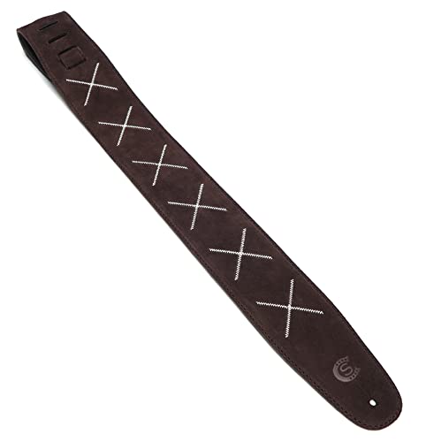 Custom Style Tracolla per Chitarra Basso"Ricamo X" Pelle Scamosciata Testa di Moro - T8SUTMX