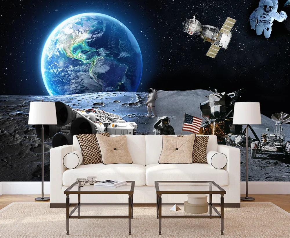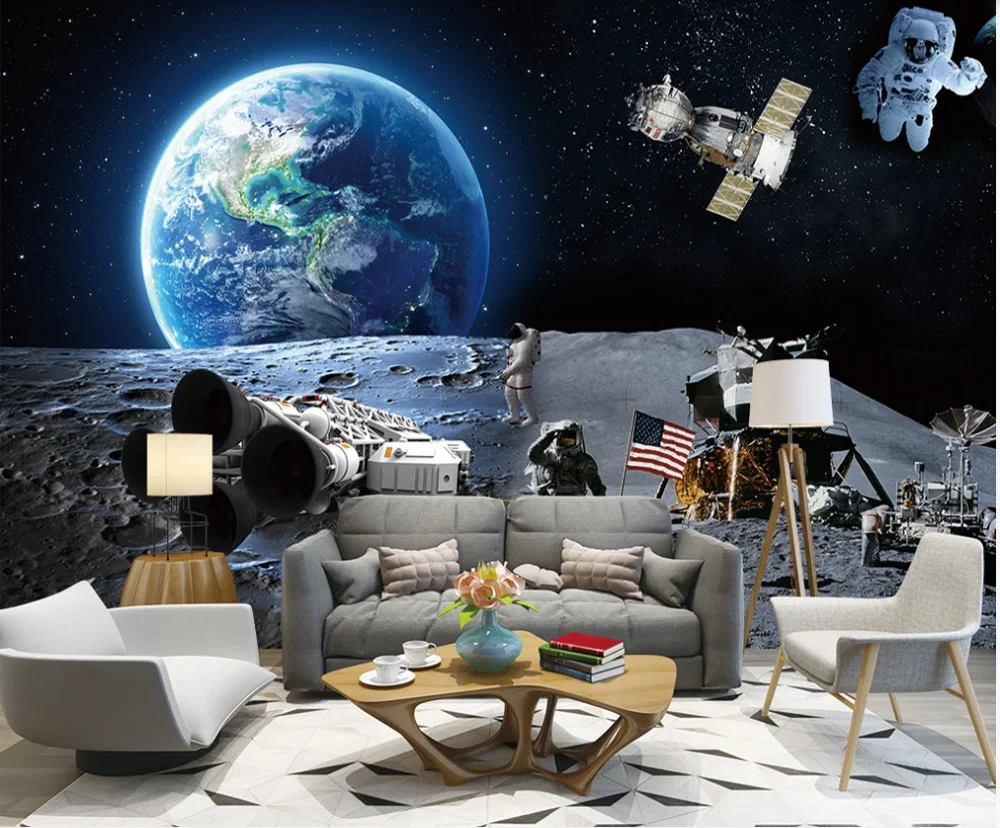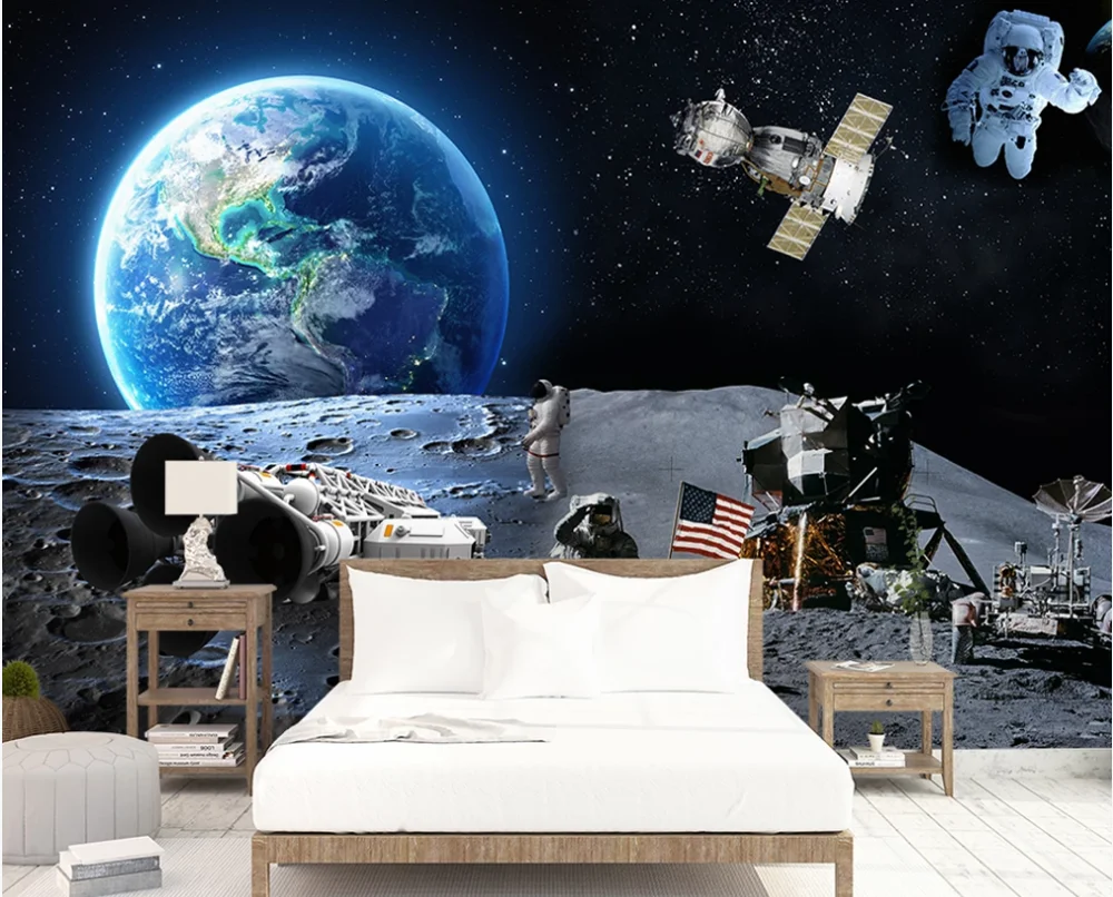 Custom 3D wallpaper mural 3D moon landing astronaut universe earth spaceship background wall children's room background wall
