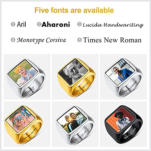 Custom4U Anelli con Foto per Uomo Donna Ragazzo Acciaio Inossidabile/Placcato in Oro/Nero Rotondo/Cuore/Quadrato Anelli Personalizzati con Sigillo Misura IT 09-32 con Confezione Regalo
