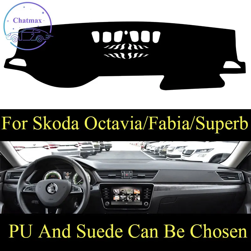 Customize For Skoda Octavia 07-19/Fabia 07-17/Superb 13-19 Dashboard Console Cover PU Leather Suede Protector Sunshield Pad