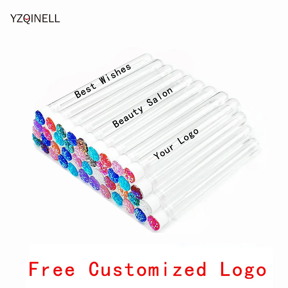 Customized Logo 20/50/100pcs Eyebrow Brush Tube Reusable Eyelash Brush Tubes Dust-Proof Mascara Sticks Applicators Makeup Brush