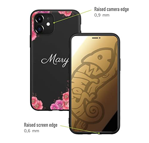 CUSTOMIZZA - Custodia cover nera morbida in tpu compatibile per Samsung A51 personalizzata con nome scritta iniziali a piacere fiori flower rosa fucsia regalo