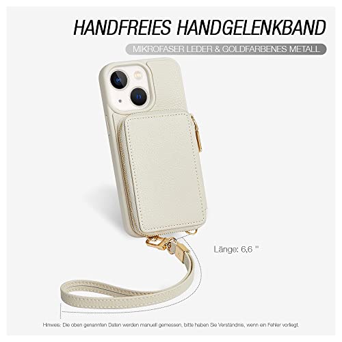 CUSTYPE Cover per iPhone 13 con Portafoglio, Custodia iPhone 13 in Microfibra Pelle con Tracolla e Cinturino da Polso, Cover iPhone 13 Beige, 6,1”