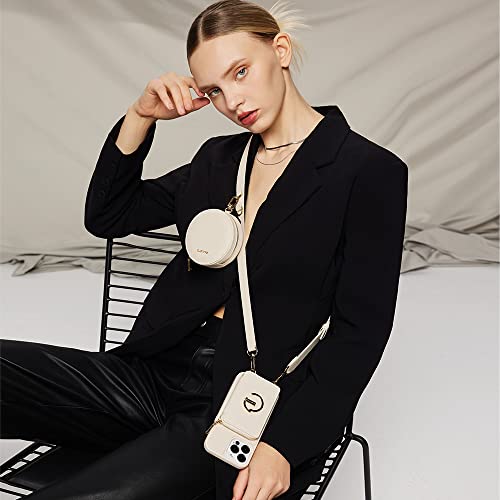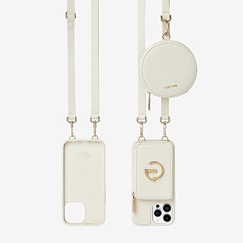 CUSTYPE Cover per iPhone 14 Pro con 1 Portamonete Rotondo, Custodia iPhone 14 Pro in Microfibra Pelle, Cover a Portafoglio con Tracolla e Cinturino da Polso, Cover iPhone 14 Pro Beige, 6,1”