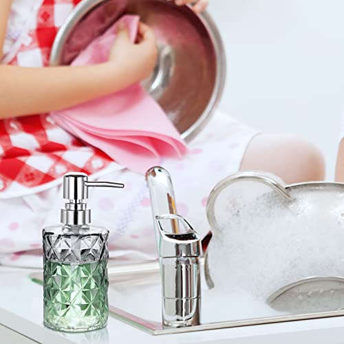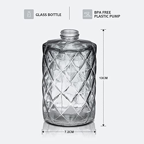 CUSWARE Dispenser di Sapone in vetro, Senza Fuga&Senza Gocciolamento,Adatto per Tutti I Tipi di Sapone Liquido o Lozione, Flaconi con pompa ricaricabili Dispenser di lozione e sapone (350Ml X 2)