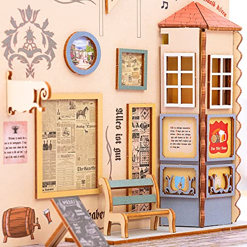 CUTEBEE Book Nook Modello Kit fai da-da-sita Casa delle bambole In legno Booknook Libreria Inserto Decor Alley, 3D Puzzle in legno Bookends Modello Costruisci kit di creatività con luce a LED YS03