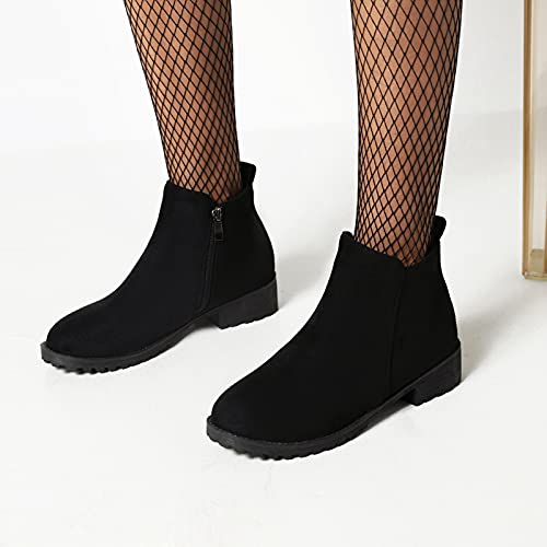 CuteFlats Stivaletti alla moda da donna con tacco basso e cerniere, Nero, 44 EU