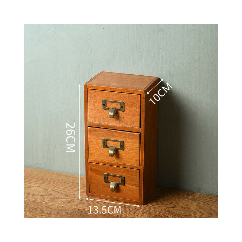 CuteLife Retro piccolo tre strati cassetto portaoggetti in legno cucina spezie decorazioni per la casa scatola da scrivania giocattolo trucco gioielli organizzatore cassetto,CHINA,A