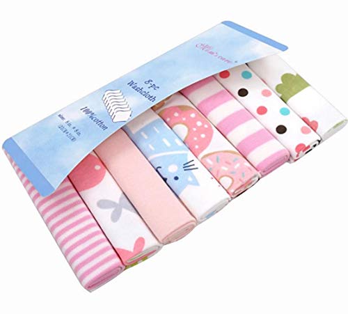 CuteOn Pacchetto di 8 Super Morbido Bambino Washcloth Feeding Wipe Stoffa per Neonato Ragazzi & Ragazze Rosa Gatto