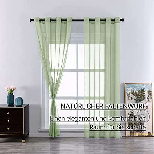 CUTEWIND Tende per Interni Voile Trasparenti con Occhielli Verde Tinta Unita per Finestra Balcone Camera da Letto Soggiorno Cameretta Bambini Leggero Morbido Moderno 2 Pezzi 140x225cm